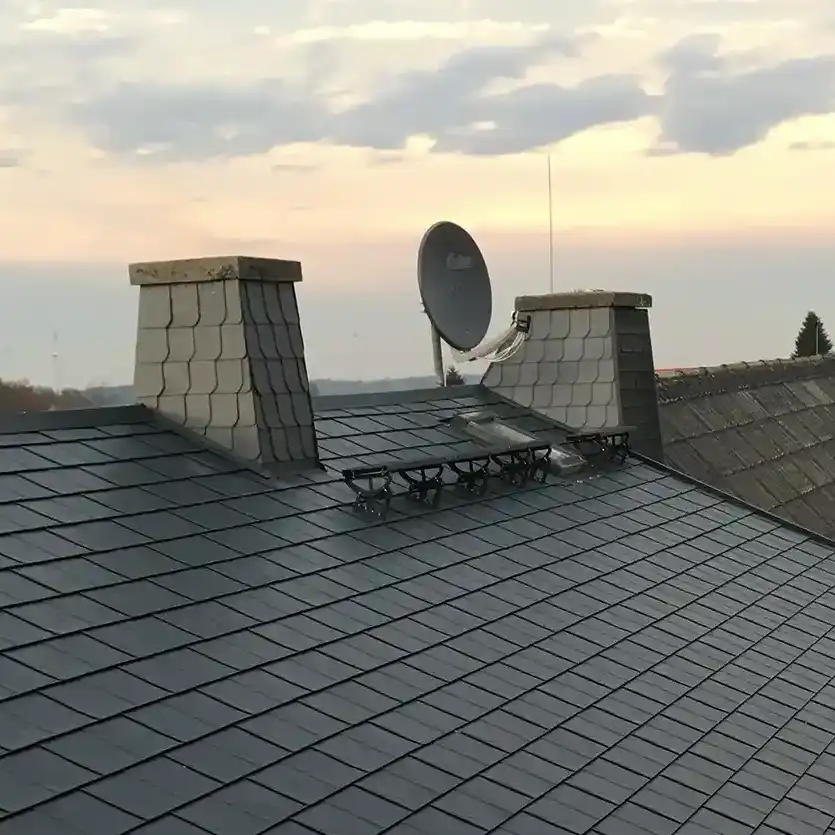 Die feine Struktur und das charakteristische Grau machen Schieferdächer nicht nur ästhetisch, sondern auch extrem langlebig und wetterfest. Jede Platte ist ein Unikat – für Dächer mit Charakter.